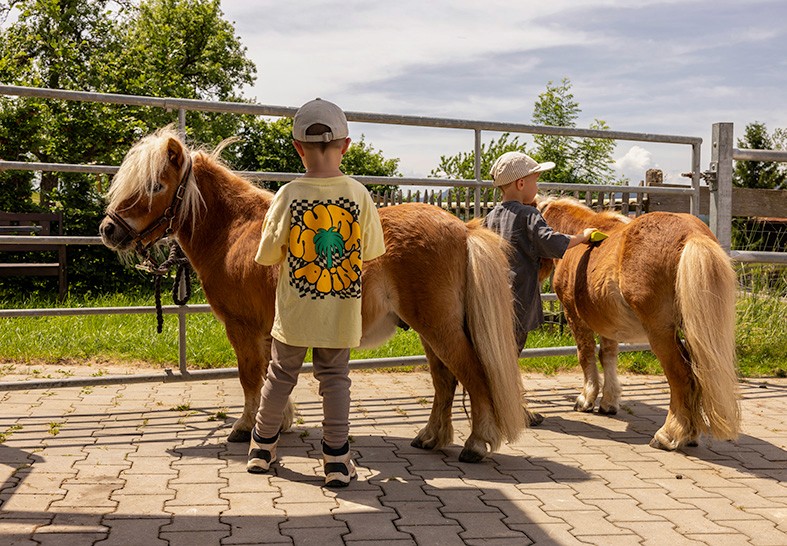 Auf unserem Ferienhof geht es um mehr als nur Urlaub: Kinder dürfen Tiere hautnah erleben, draußen herumtollen und auf dem Spielplatz oder beim Ponyreiten schöne Hofmomente sammeln.