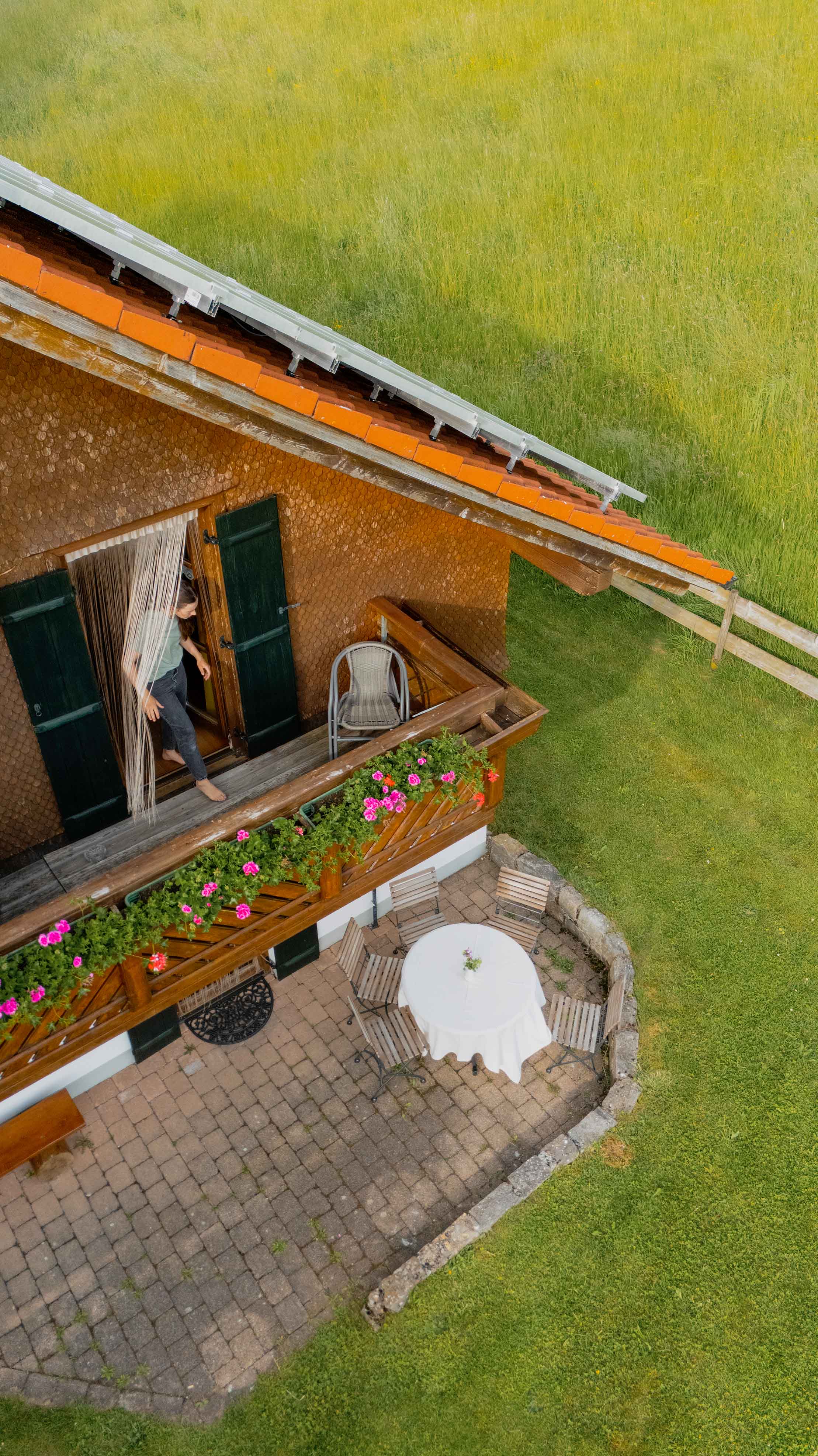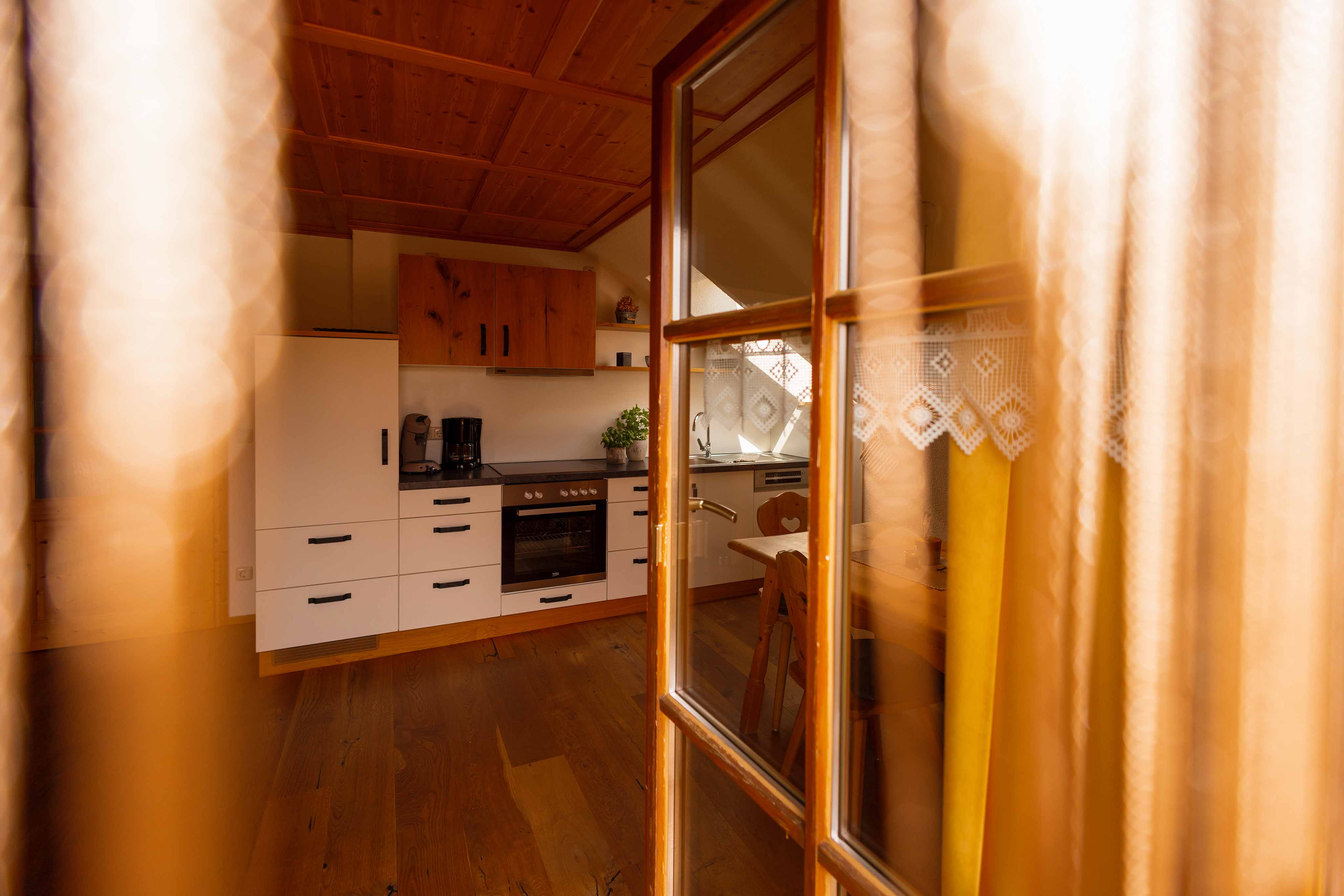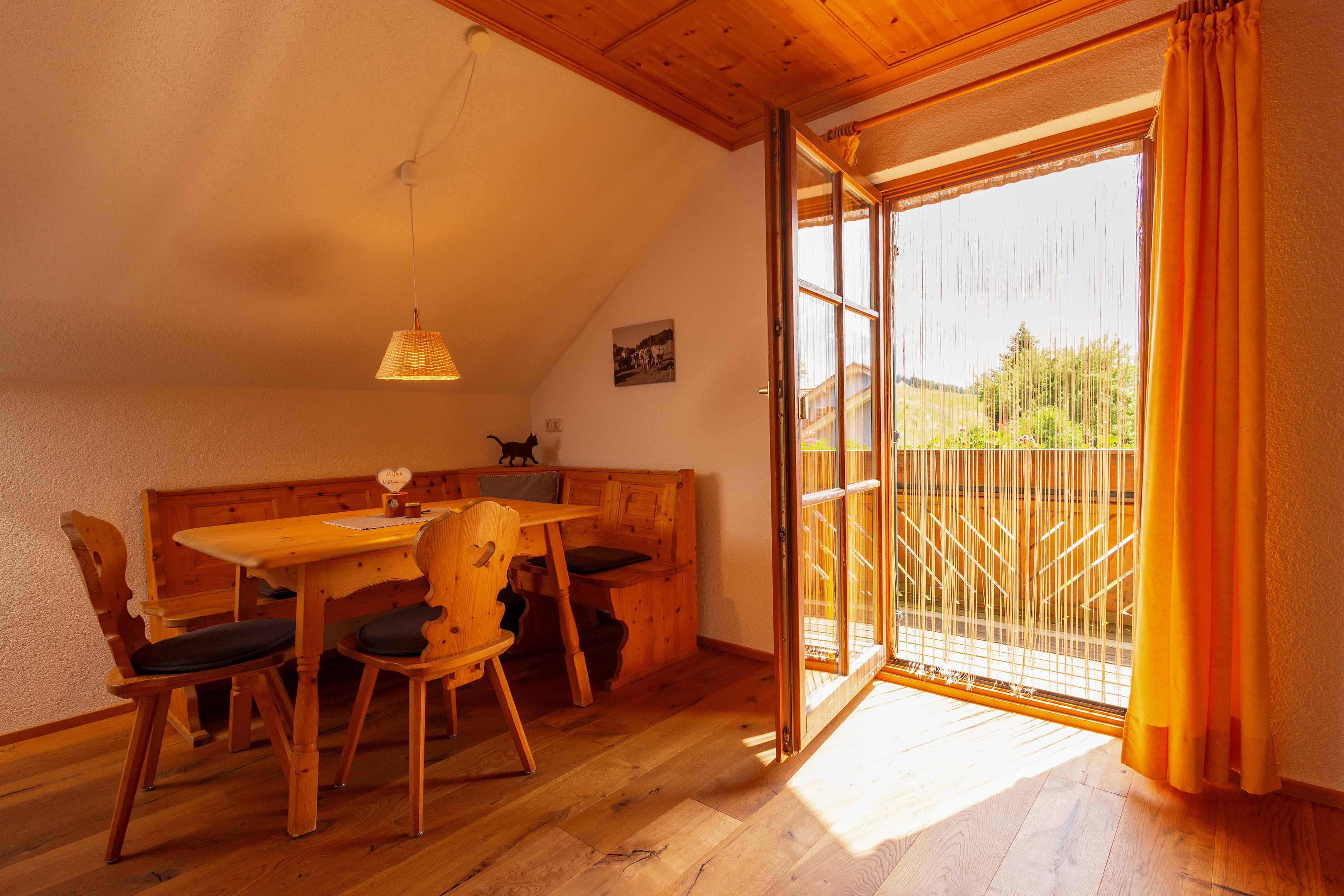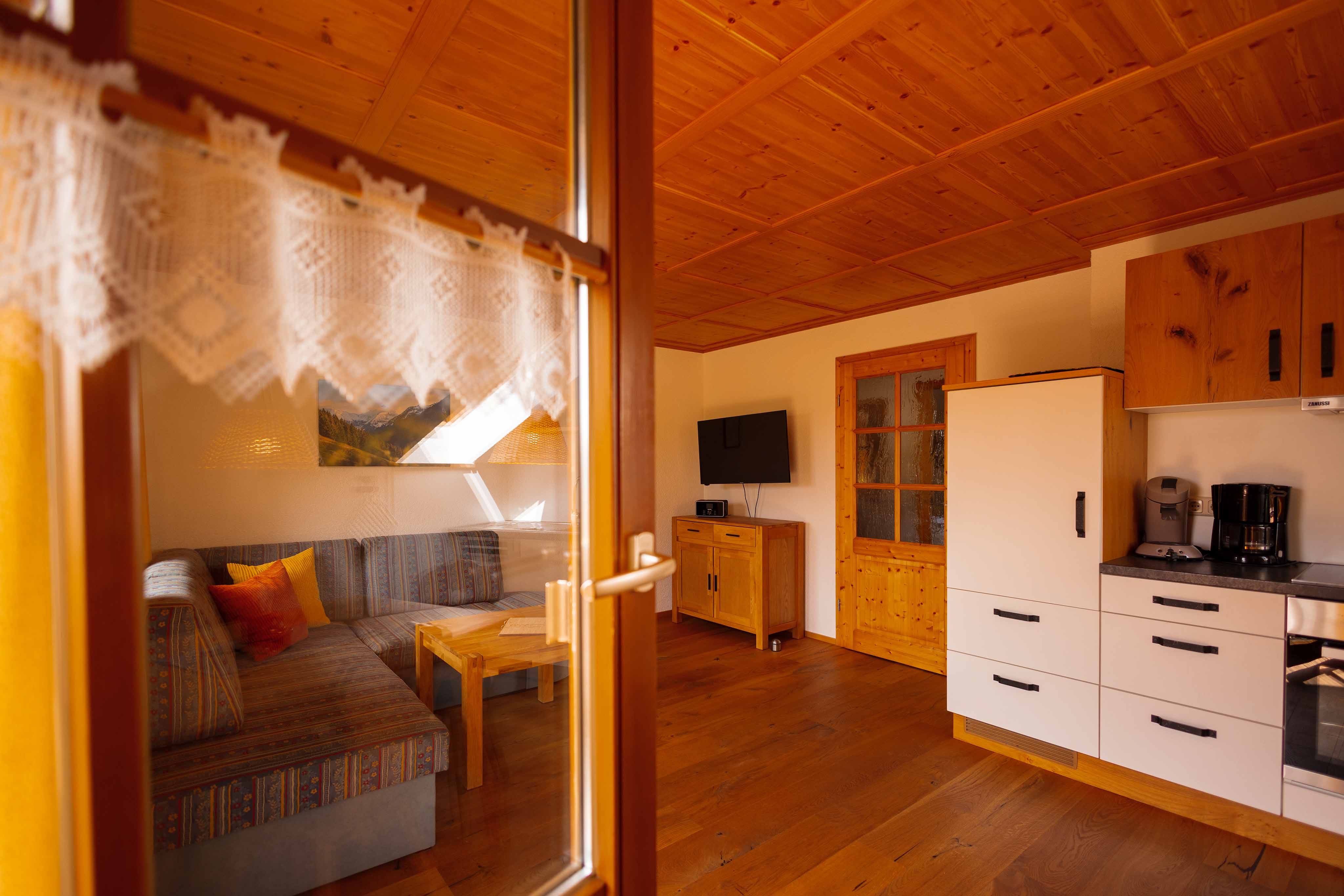Die gemütliche Ferienwohnung „Krähnberg“ liegt im ersten Stock des liebevoll umgebauten, ehemaligen Lifthäuschens – idyllisch gelegen am Fuße unseres Hausberges, dem Krähnberg. Von beiden Balkonen eröffnet sich ein weiter Blick in die Allgäuer Natur: über sanfte Hügel, grüne Wiesen und ferne Berggipfel – ein Panorama, das sofort Ruhe schenkt und zum Durchatmen einlädt.