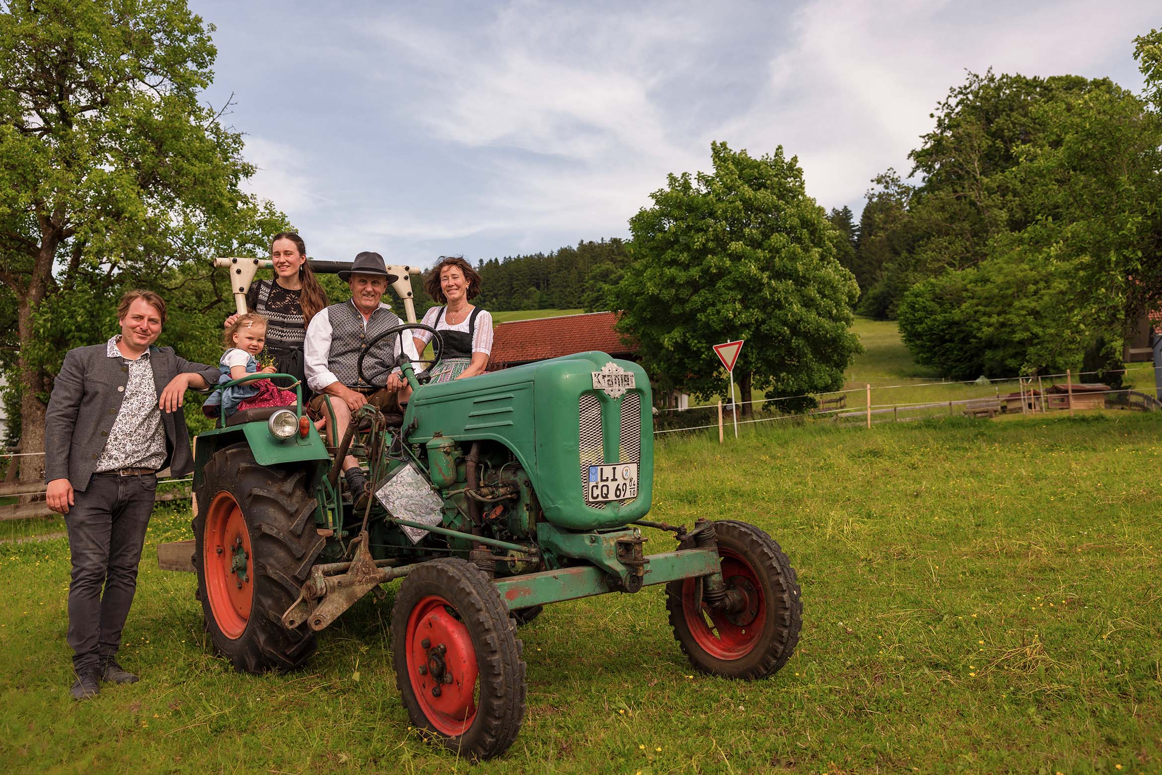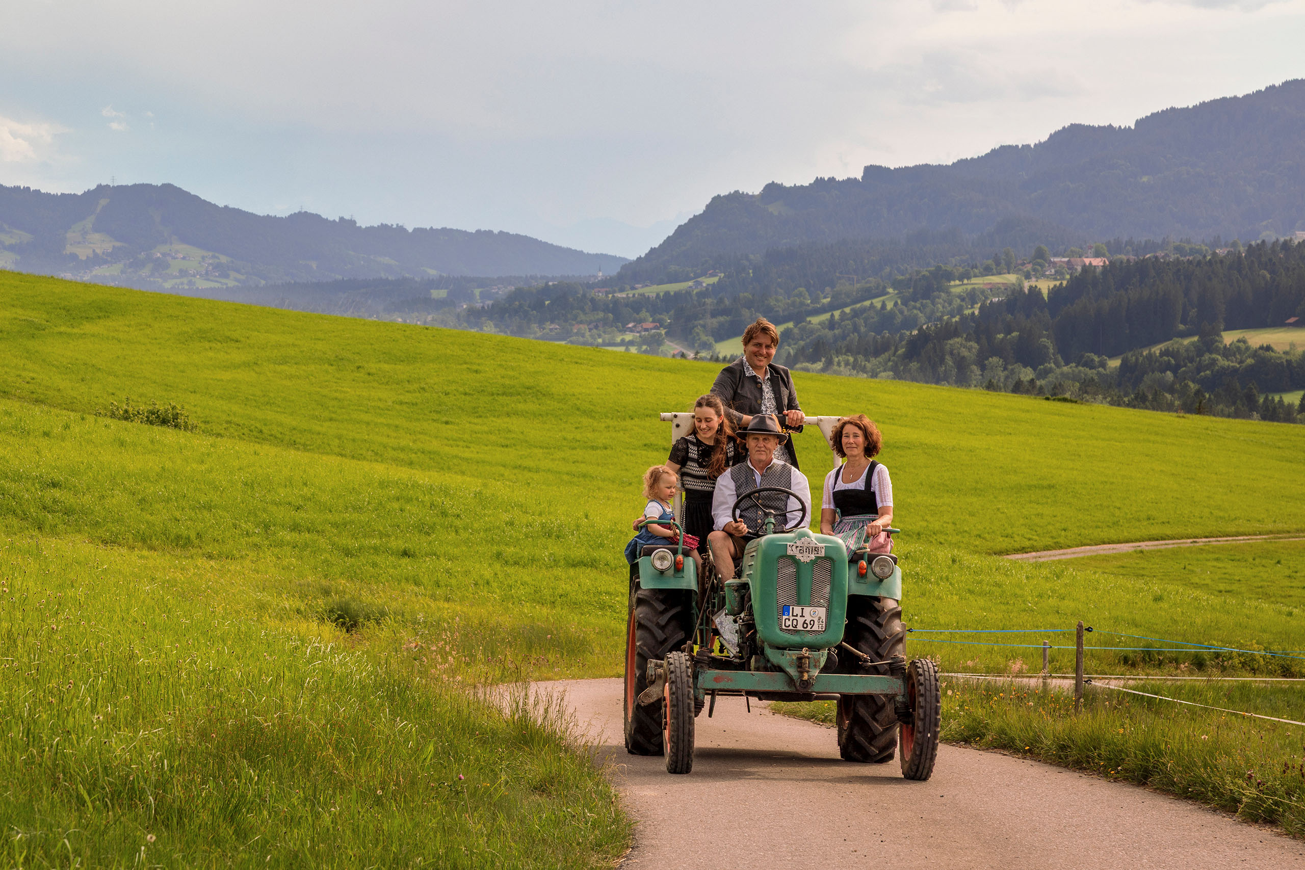 Mit unserem restaurierten Kramer-Oldtimer (Baujahr 1960) könnt ihr von April bis Oktober das Westallgäu auf idyllischen Nebenwegen selbst erkunden – ganz gemütlich durch Wald und Flur. Führerschein Klasse 3, B oder L erforderlich. Vorab gibt’s eine kurze Einweisung mit Fahrtraining.