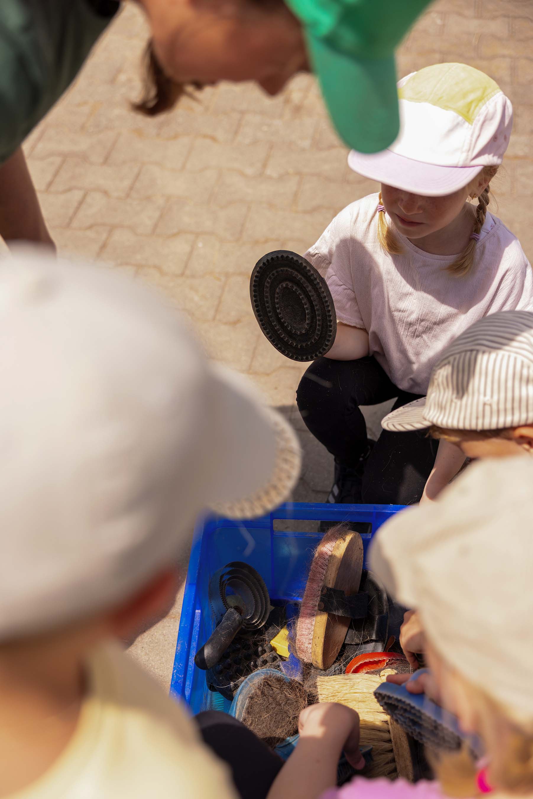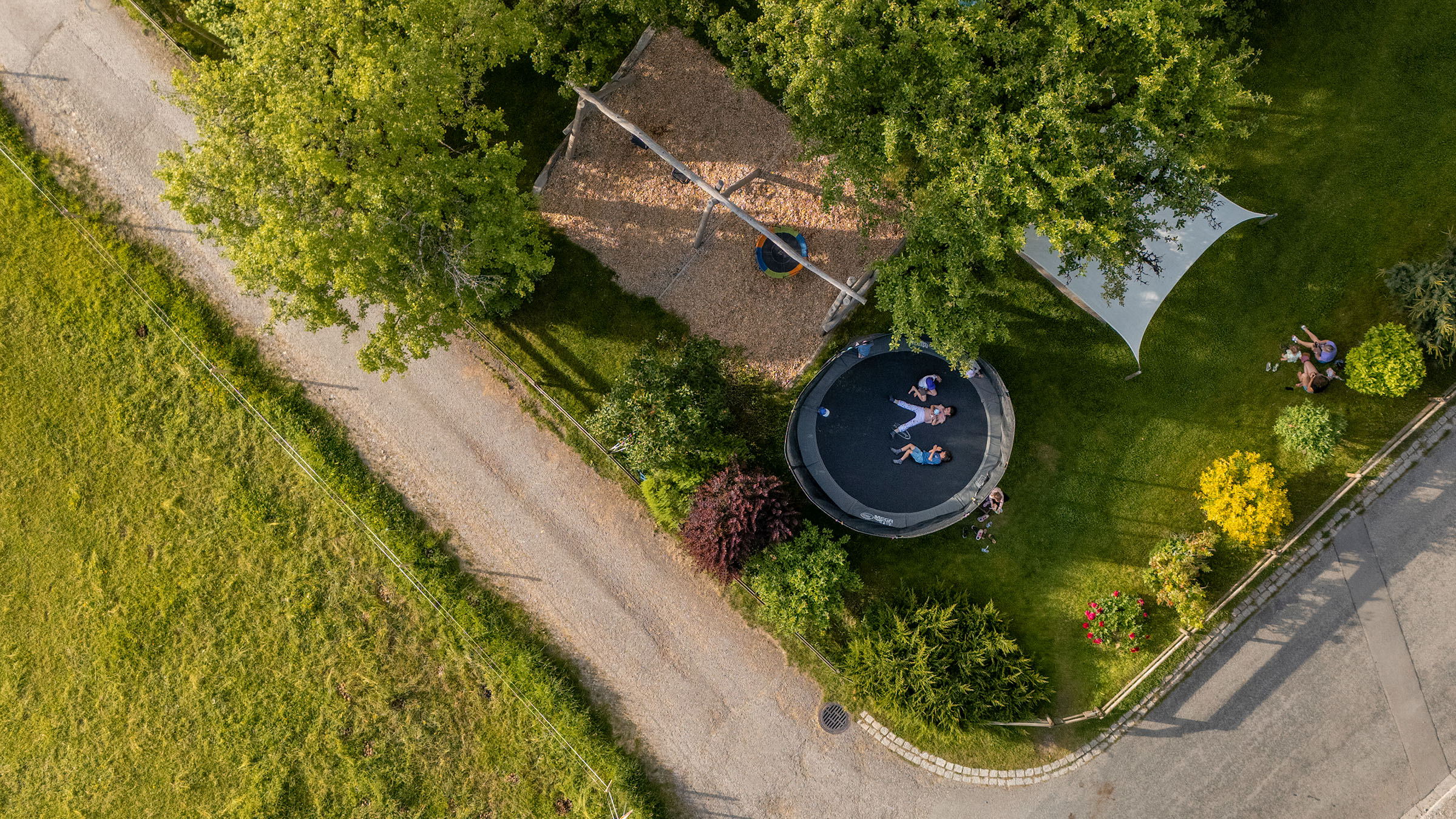 Toben, schaukeln, rutschen – bei uns draußen gibt es jede Menge Platz für kleine Entdecker. Unser großer Spielplatz ist direkt am Hof und bietet mit Sandkasten, Riesentrampolin, Schaukel und Rutsche viele Möglichkeiten, sich auszupowern. Auch steht eine Tischtennisplatte für das ein oder andere Match bereit.