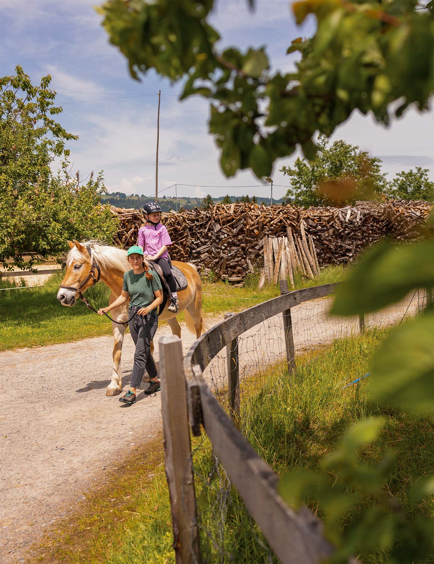 Direkt vom Hof aus starten unzählige Rad- und E-Bike-Touren – vorbei an grünen Wiesen, sanften Hügeln und immer mit Blick auf die Berge. Ob gemütlich oder sportlich: Hier findet jeder seine Lieblingsstrecke.
