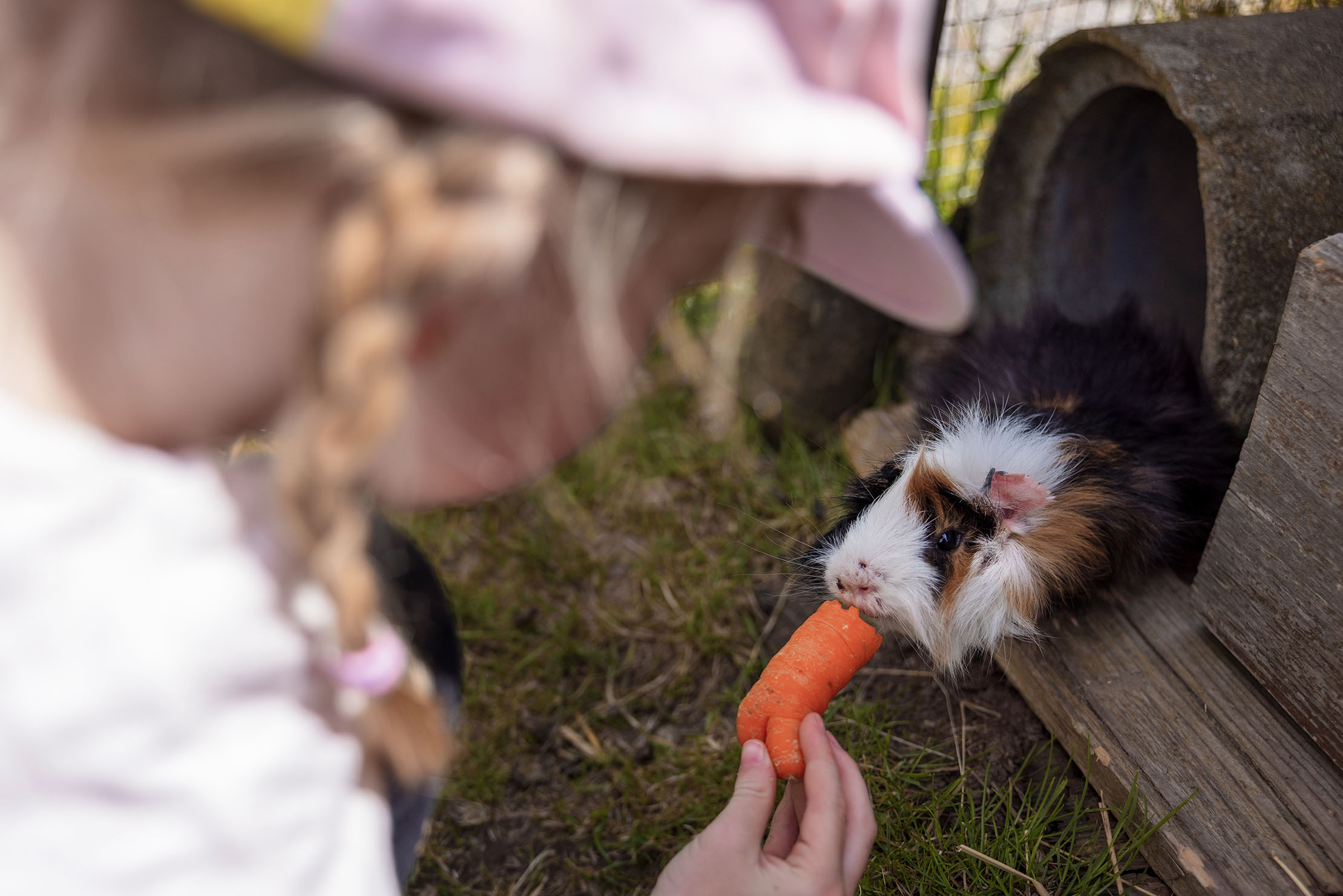 Wer mag, darf nicht nur zuschauen, sondern auch mithelfen: Striegeln, füttern, streicheln – unsere Tiere freuen sich über sanfte Hände und große Neugier. Kaninchen, Meerschweinchen, Katzen und Ponys warten schon auf kleine Tierfreunde.